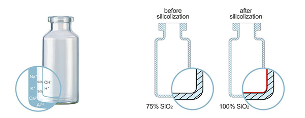 Using a special process to form a layer of ultra-thin and dense uniform silica film on the inner wall of the glass bottle,using the high flexibility of the thin film of pure silicon to seal and shield,ensure the stability of the pharmaceutical,and prevent alkali lions from being precipitated in the glass.Improve drug compatibility.